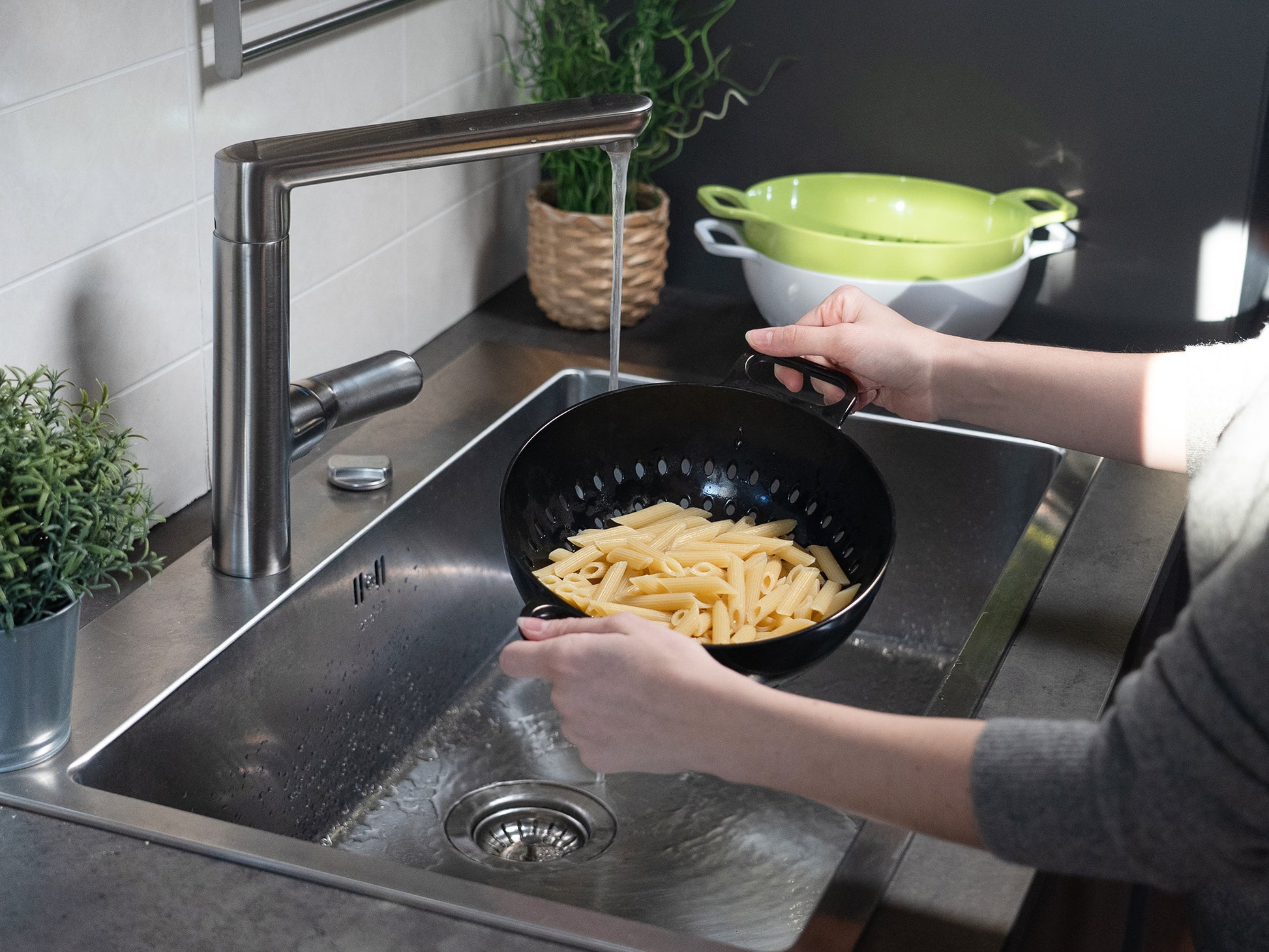 Passoire en mélamine avec finition brillante.
