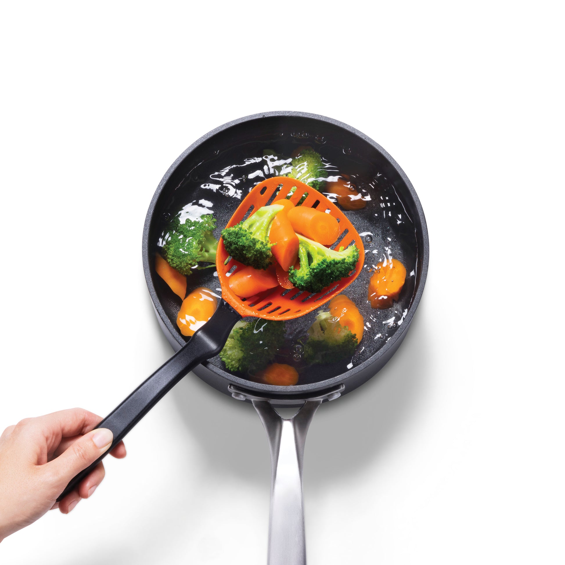 Égouttez sans salir : l’écumoire qui garde le plan de travail au sec.